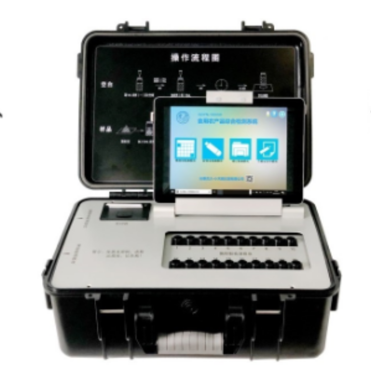 1、便攜式手提箱設計,內置鋰電池用于現場快速檢測。